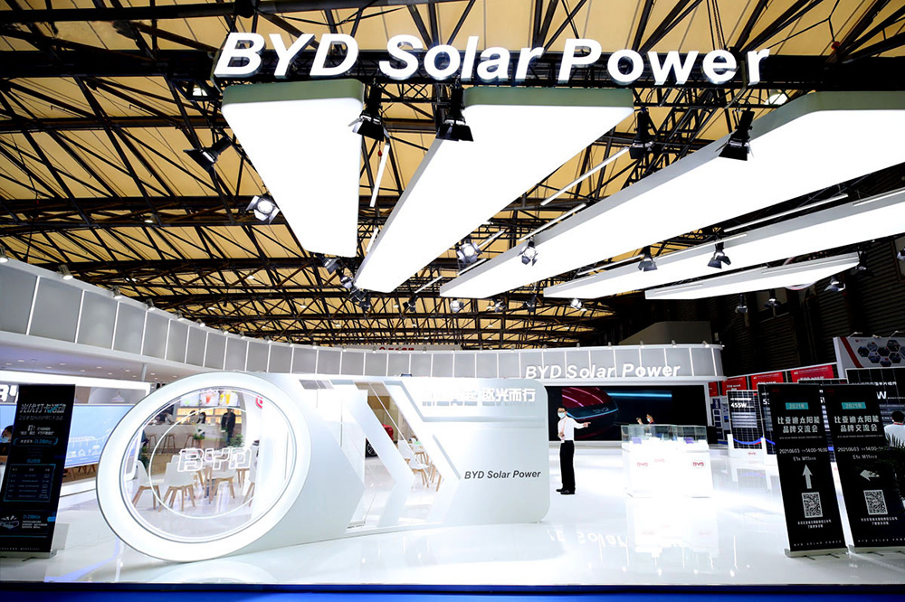 At the Shanghai New International Expo Center, Limei International Exhibition assisted BYD in building a distinctive booth themed "New Journey, Pursuing the Light". The BYD booth covers an area of 500 square meters and adopts a white color scheme, featuring a minimalist and elegant open design, cleverly incorporating industrial style and a sense of technology, all of which showcase BYD Solar's unique brand charm and group strength,