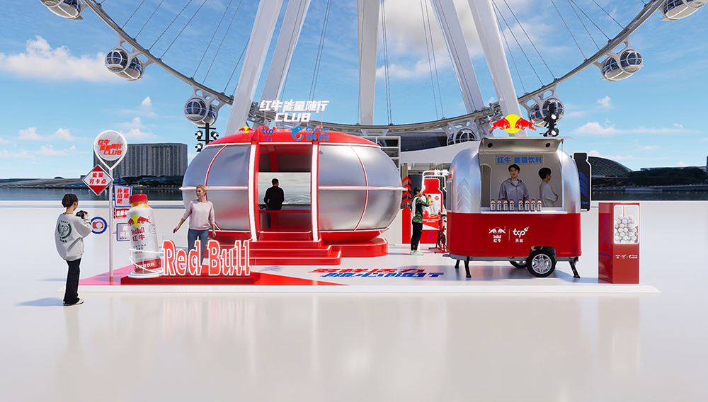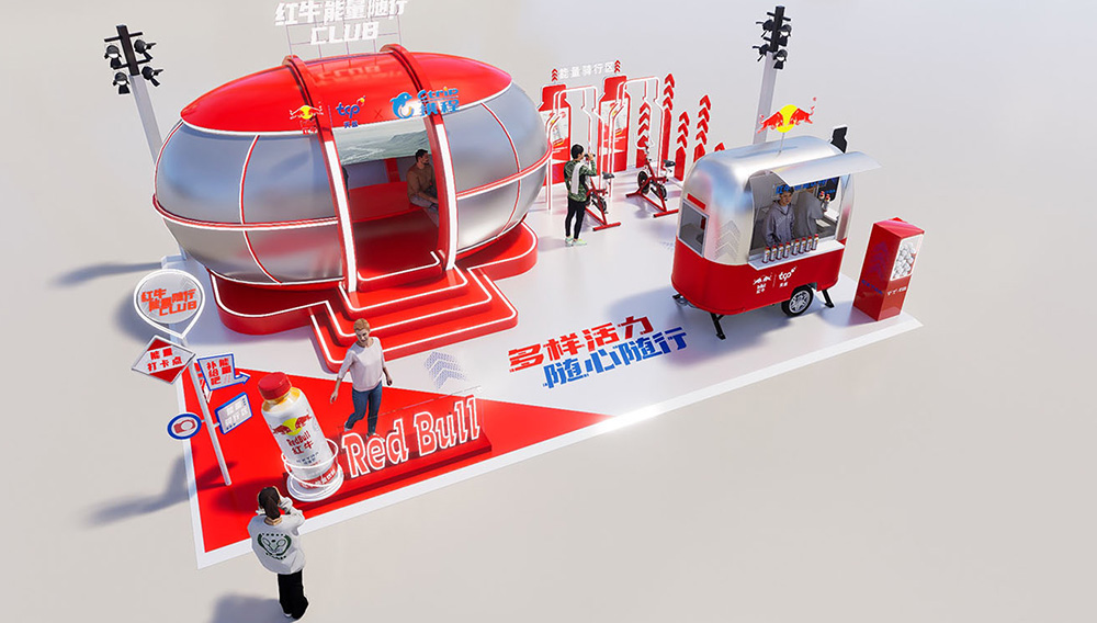 The Red Bull x Ctrip "Energy on the Go" outdoor pop-up campaign is conceived around the core idea of "building a movable energy oasis." It aims to rapidly create a high-energy, temporary urban hotspot within public space that combines brand energy replenishment, multi-sensory experiences, and community interaction. Closely adhering to the "Energy on the Go" theme, the design moves beyond traditional one-way brand exhibition, fostering instead an open, explorable, and immersive energy field.